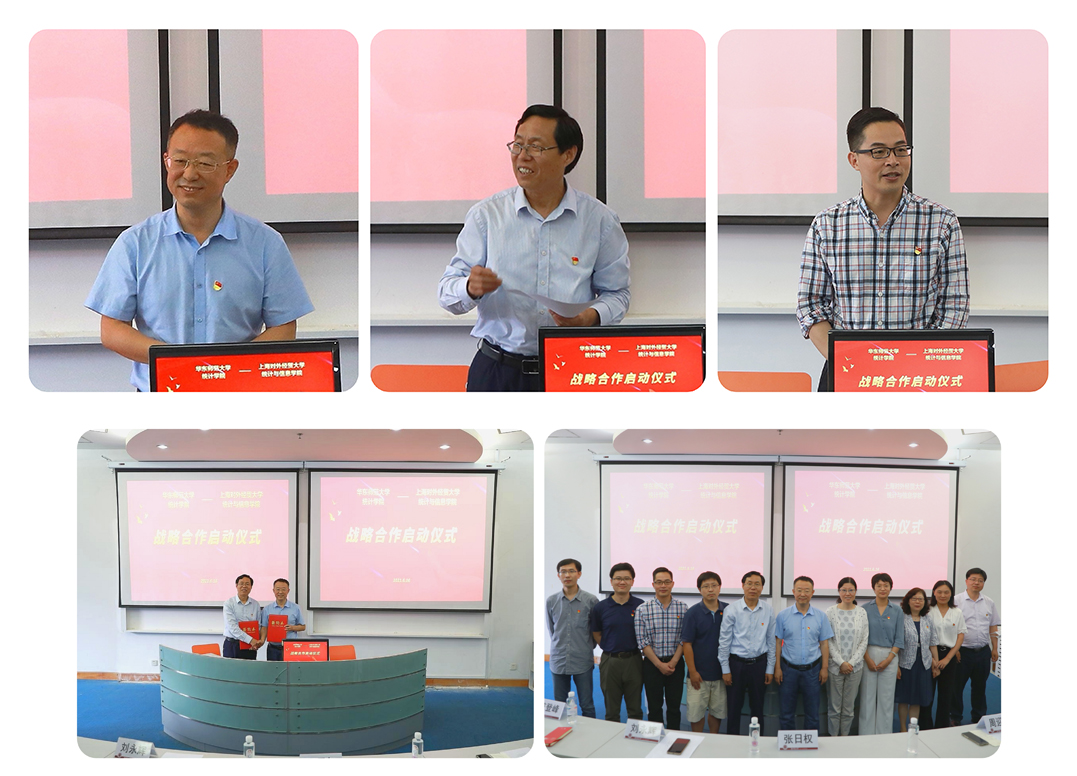 6月16日,统计与信息学院和华东师范大学统计学院在华东师范大学中北校区举行共建签约仪式,正式启动战略合作。双方领导班子成员、教师代表出席了签约仪式。仪式由华东师范大学统计学院教工党支部书记周迎春主持。