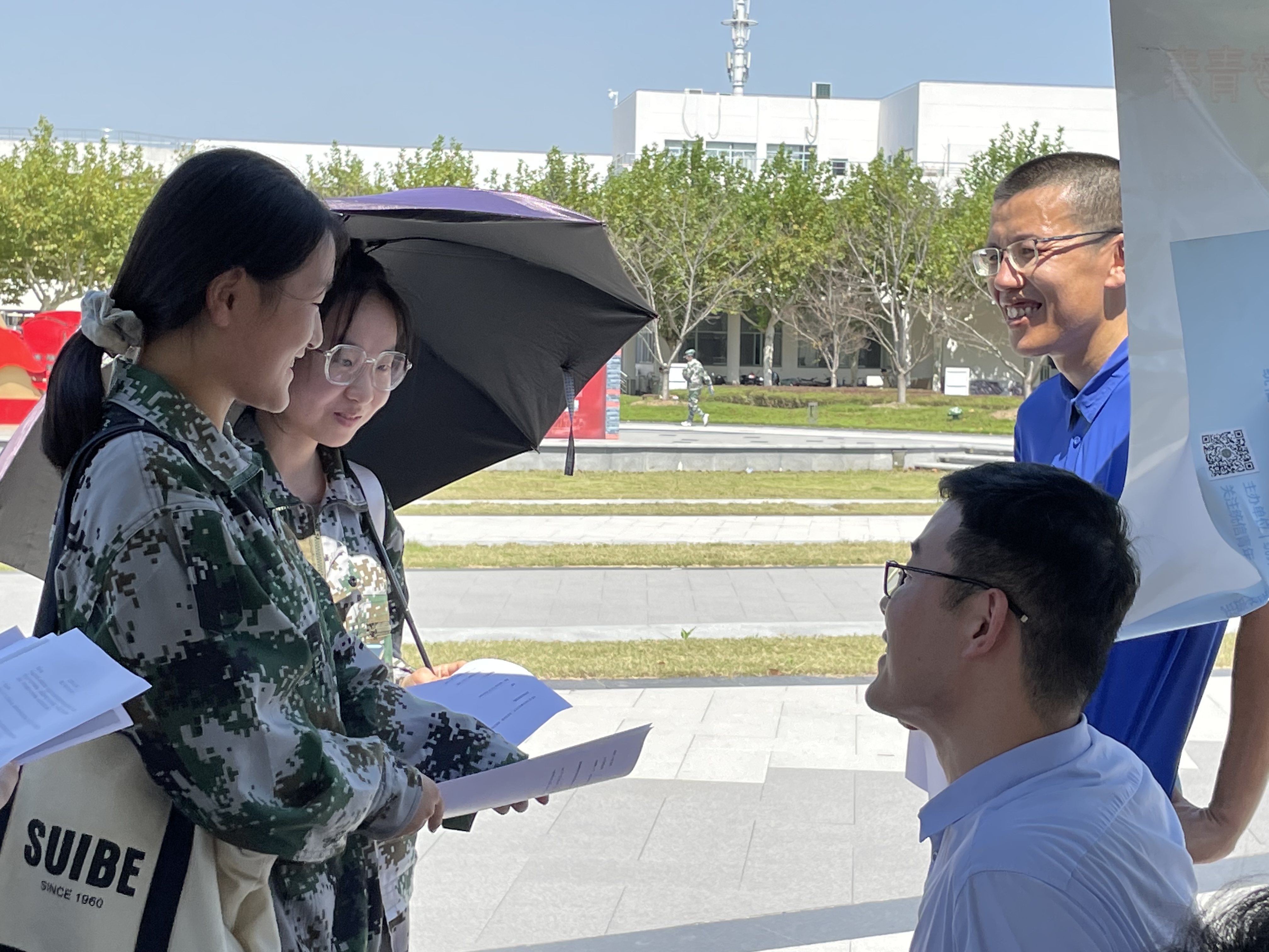活动当日,烈日当空,参加活动的老师们克服酷暑,面对前来咨询的学生,以饱满的热情、专业的讲解,回答了同学们从“大学最难的科目”到“如何学好概率论和高数”,再从“考研数学什么时候准备”到“计算机竞赛和数学竞赛应不应该参加”“上海市计算机水平等级考试是否有专门辅导”等问题,进行了亲切坦诚的交流。