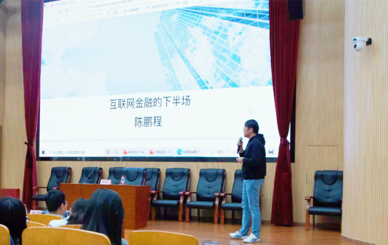 陈鹏程以“互联网金融的下半场”为主题,以金融基础业务场景为切入点,用简洁明快的语言,通过贴近生活的案例,介绍了目前互联网金融所面临的风险与挑战、以及信贷风控的底层逻辑与链路,让同学们对于互联网金融发展现状与未来发展方向有了更深入的了解。