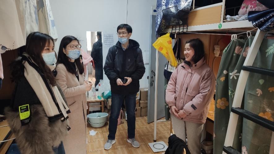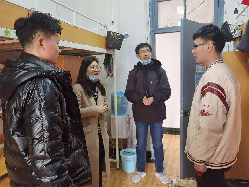 刘素贞、李睿和辅导员深入学生宿舍,了解同学们的假期生活和开学安排,叮嘱同学们新学期要有新气象,希望大家在返校后能及时调整状态,积极投入到新学期的学习和生活中。学院领导重点关注毕业班学生的毕业和就业情况,询问每一位毕业生的就业去向与准备工作,针对性提出了方向和建议,把就业指导做到了学生“书桌前”。