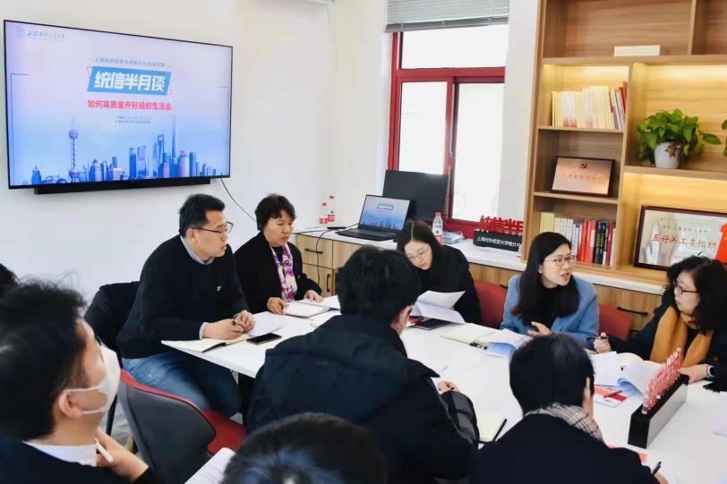 为深入学习贯彻习近平新时代中国特色社会主义思想,学习贯彻党的十九届六中全会精神,不断推进党的建设新的伟大工程,根据中央、市委、市教卫工作党委和学校党委相关要求,统计与信息学院于2月24日下午在博识楼108党建活动室举办“统信半月谈”活动,聚焦“如何高质量开好组织生活会”,就2021年度组织生活会和民主评议党员工作进行专题培训,并研讨了2022年度学院党建工作重点任务。学院党委副书记(主持工作)刘素贞、全体师生党支部书记、组织员、辅导员参加会议。