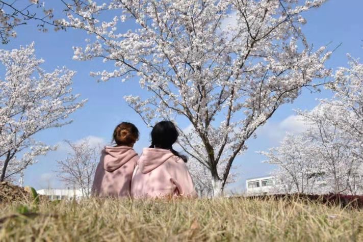 校园里早春的花儿已经开放,待到阴霾消散、繁花似锦的时候,我们约好,并肩迎接那灿烂的阳光。
