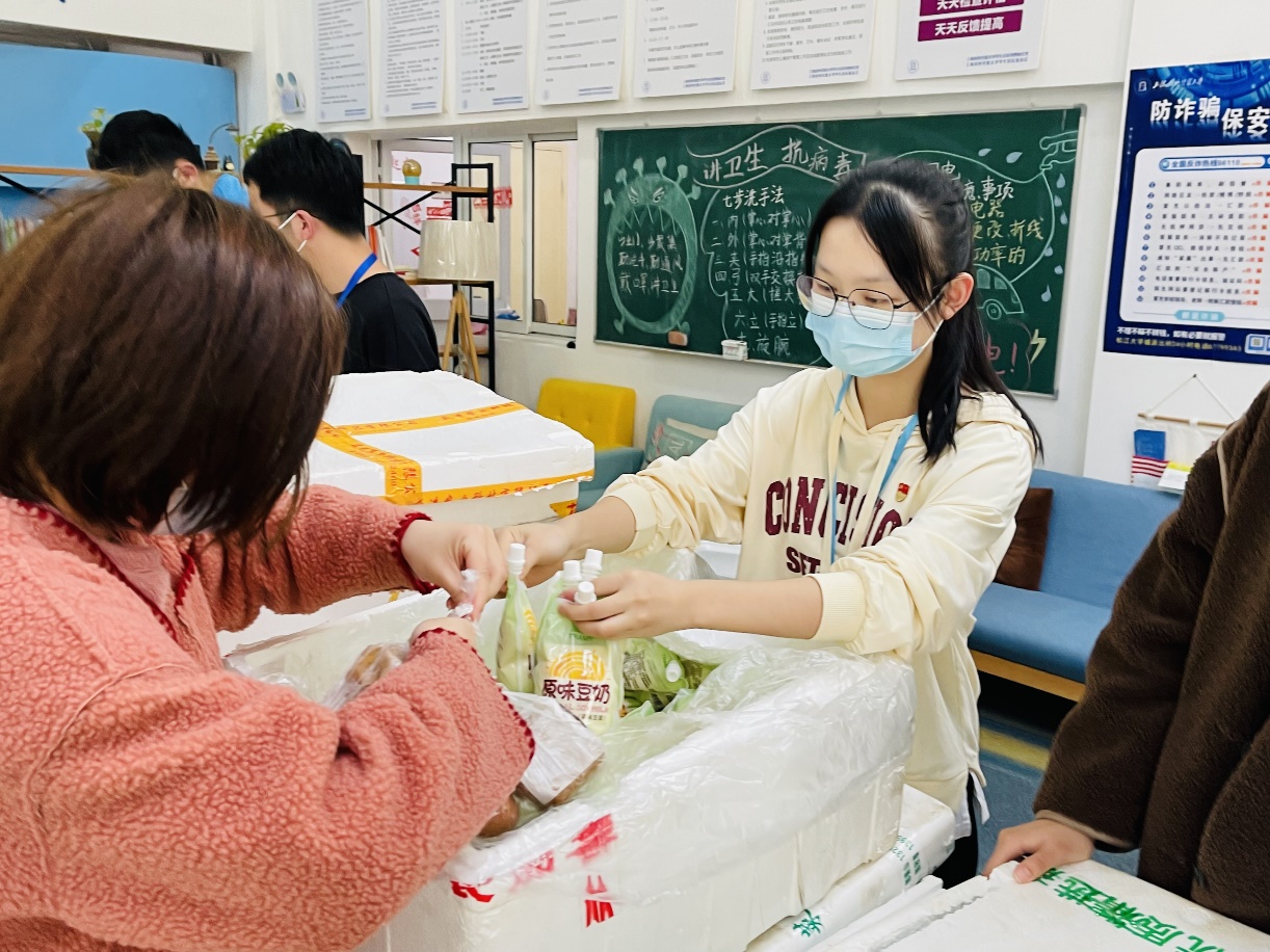 辅导员:“我会一直与大家在一起”。学生社区封控期间,学院本科生党支部书记、辅导员杨小帆第一时间组建了一支由学生支部书记、学生党员、团员骨干组成的50人社区志愿者专班队伍,根据学校统一要求,组织核酸检测、配送物资、送餐送水,统计报送数据,关心学生在线学习,稳定学生情绪,进行心理疏导。她每天奔波在社区各个楼宇,睡眠不足5个小时,却始终带着微笑鼓励同学们:“同学们不用担心,我会一直与大家在一起。”学生党团员:“我们共产党员责无旁贷”“我们共青团员义不容辞”。当社区打响防疫战斗,社区里的学生党员和团员火速向辅导员报名集结,加入志愿者专班队伍,有序参与各项服务工作。研究生第六党支部书记申玉宇同学带领学生党员、退伍学生、团员组成的志愿者队伍,楼宇封闭前,凌晨引导同学们排队进行核酸检测;楼宇封闭后,他们来回奔波为同学拿取订购的物资和药品;天色微亮他们为同学们送上热气腾腾的早饭;每天不辞辛苦多次往返在数个楼栋7层楼梯上,敲响130多个寝室,叮嘱同学们按时吃饭。学生党员王文彦,每天坚持一个人负责楼内30多位同学配送三餐。还有很多学生积极报名的同学,虽然没能穿上志愿者马甲,但是他们仍然主动服务、积极奉献,为抗击疫情贡献红色青春力量。他们,成为学生社区最靓丽的风景线,为抗击疫情贡献红色青春力量。