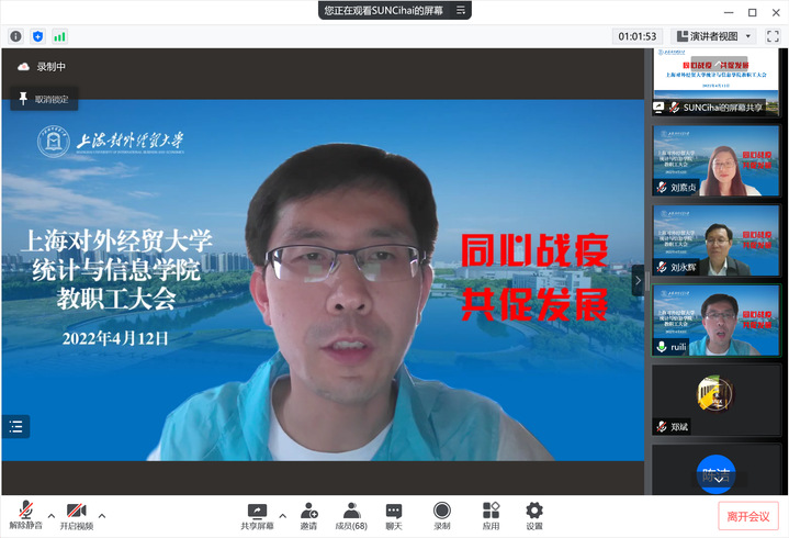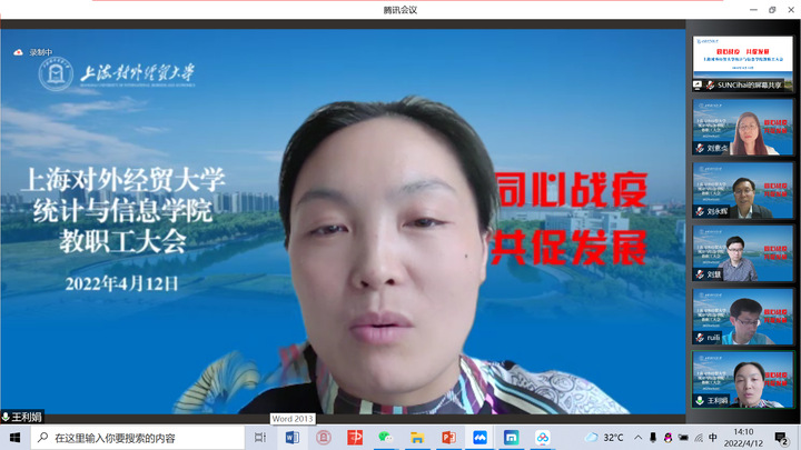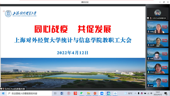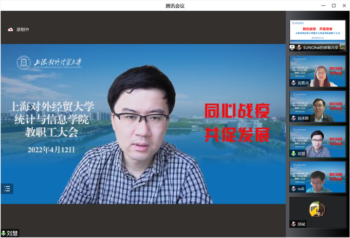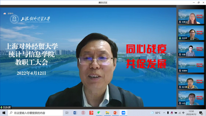 4月12日下午,统计与信息学院在线召开全体教职工大会,就近期疫情防控工作和教学、科研、就业等工作进行了部署,学院领导班子、全体教职工参加了会议。会议由学院院长刘永辉主持。
