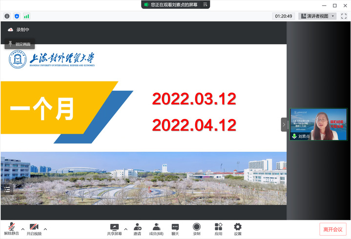 学院党委副书记(主持工作)刘素贞以“同心战疫 共促发展”为题就学院进一步统筹疫情防控和事业发展进行再动员和再部署。她首先向奋战在校内校外各个抗疫岗位上的全体教职工表示慰问和感谢,她以“六个一”:一个月、一个原则、一支队伍、一套措施、一个阵地、一种精神的关键词回顾和总结了一个月以来学院上下战疫情、促发展的情况,并进一步传达了当前上海市和学校防疫工作的最新要求。她就下一阶段的工作,希望学院全体教职工重点做到以下三点:一是要带头防控,严格贯彻执行上级部署,落实落细防控工作要求;二是要带头践行,关心关爱师生,校内校外共同守“沪”,助推学校和学院各项事业发展;三是要带头弘扬伟大抗疫精神,坚定必胜信心,汇聚智慧力量,相信在中央、上海市委、市教卫工作党委和学校党委的坚强领导下,一定会打赢防疫大仗硬仗。