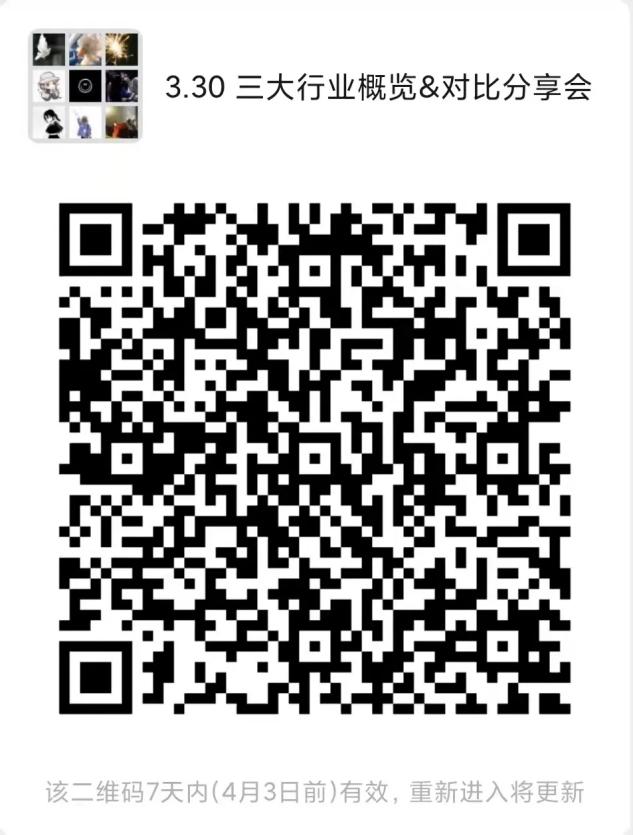 分享会将由3位嘉宾分别对金融行业、互联网行业、咨询行业进行概览介绍,包括各行业发展历程、职业路径、日常工作任务与职责等,并将各行业人才类型需求横向对比,可以让同学们对各行业形成框架性认知、对自身的职业规划有更清晰的认识。