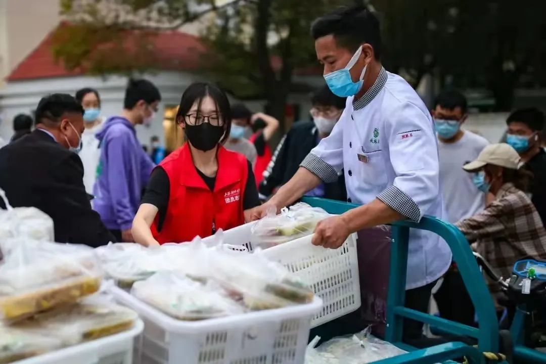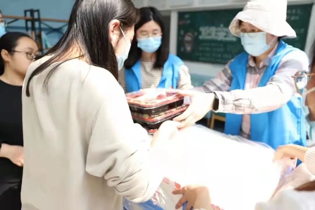 很荣幸此次能担任一名抗疫志愿者,弥补两年前的那抹遗憾。作为楼宇志愿者,我们引导大家进行核酸检测,分发一日三餐。作为送餐志愿者,我们推着餐车在各个楼栋之间穿梭,确保同学们能准点吃饭。在这里,所有人都是温暖的存在。老师们开紧急会议,更新信息,准备物资,陪同出餐;无数的志愿者们并肩作战,保障大家的日常生活;同学们积极配合,井然有序,悄悄为志愿者们准备自己的一份心意。