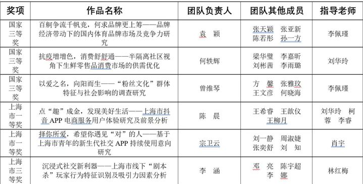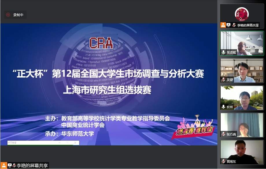4月10日,由教育部高等学校统计学类专业教学指导委员会与中国商业统计学会共同举办、华东师范大学承办的“正大杯”第十二届全国大学生市场调查与分析大赛上海市研究生组选拔赛落下帷幕,我校研究生袁颖、何轶辉、曾维琴等同学组成的6支队伍在比赛中获得国家三等奖3项、省一等奖2项、省三等奖1项,实现了学校在该赛事获奖总数的新突破。