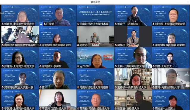 为深化对统计学“双万”建设路径和发展前景的研讨, 4月19日下午,上海对外经贸大学统计与信息学院、河南财经政法大学统计与大数据学院在线联合举办2022年统计学“双万”建设虚拟教研活动,围绕“以课程建设为核心,提升专业建设水平”主题,来自上海财经大学、江西财经大学、北京工商大学、新疆财经大学、兰州财经大学等全国各地26所财经类院校专家学者齐聚“云端”共襄盛会,共同探讨统计学一流专业建设和一流课程建设。教育部高等学校统计学类专业教学指导委员会主任委员房祥忠教授,上海对外经贸大学校长汪荣明教授,副校长徐永林教授,河南财经政法大学党委书记杨宏志教授,副校长刘荣增教授等出席会议。