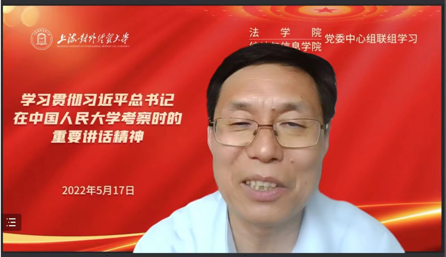辅导报告后,法学院、统计与信息学院党委中心组进行联组交流研讨,双方党员干部结合工作实际,就学习体会进行了交流和讨论。与会双方充分肯定了此次联组学习的成效,表示将积极贯彻习近平总书记在中国人民大学考察时的重要讲话精神,充分结合学院实际、发挥各自优势,在党建工作、学科发展、人才培养、课程思政和教师队伍建设等方面加强交流合作,互相借鉴有效经验,牢牢把握立德树人根本任务,扎根中国大地办教育,扎实推动习近平总书记重要讲话精神的落地见效,统筹推进防疫工作和事业发展,以优异成绩迎接党的二十大胜利召开。