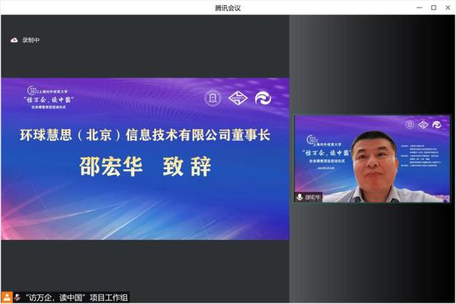 5月28日,第四届“访万企,读中国”社会调查项目启动仪式在线举行,中国对外经济贸易统计学会名誉会长王亚平,环球慧思(北京)信息技术有限公司董事长邵宏华,上海对外经贸大学校长汪荣明,副校长徐永林以及来自全校各学院的调查项目指导教师、学生队员共同出席启动仪式。