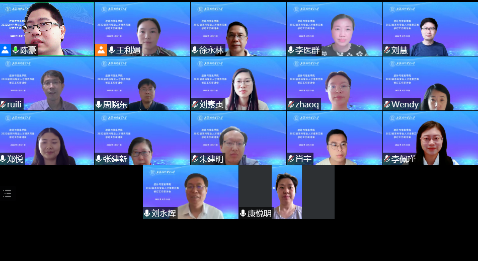 数理统计系主任周晓东、经济统计系主任李佩瑾、信息管理系副系主任肖宇、数据科学系主任李睿、信息管理系主任董云朝、贸易统计创新实验班负责人张建新等分别汇报了2022级应用统计学、经济统计学、信息管理与信息系统、数据科学与大数据技术、人工智能专业和贸易统计创新实验班人才培养方案的修订情况和主要内容。