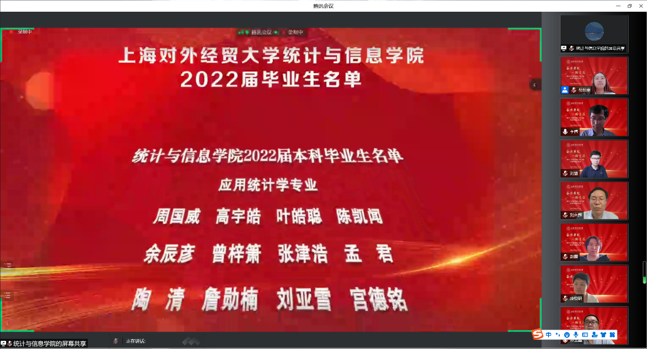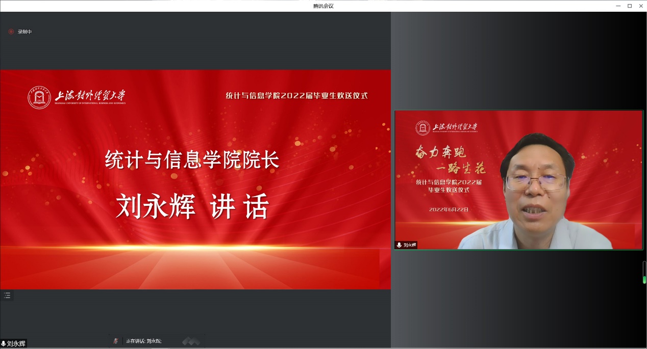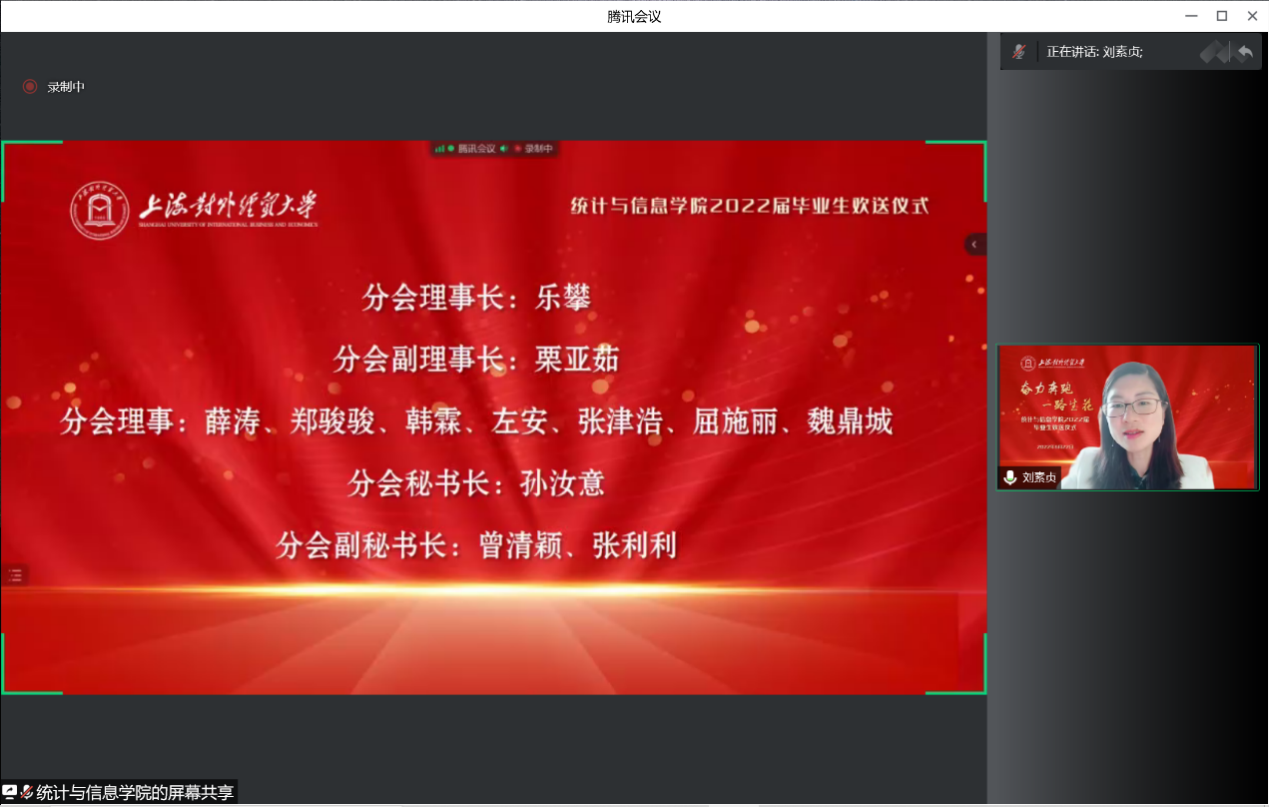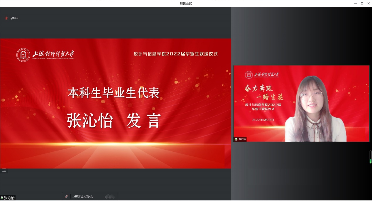 6月22日上午,统计与信息学院线上举行“奋力奔跑 一路生花”——2022届毕业生欢送仪式,学院领导班子全体成员、教师代表、校友代表相聚云端共同欢送2022届全体毕业生。欢送仪式由学院党委副书记李睿主持。