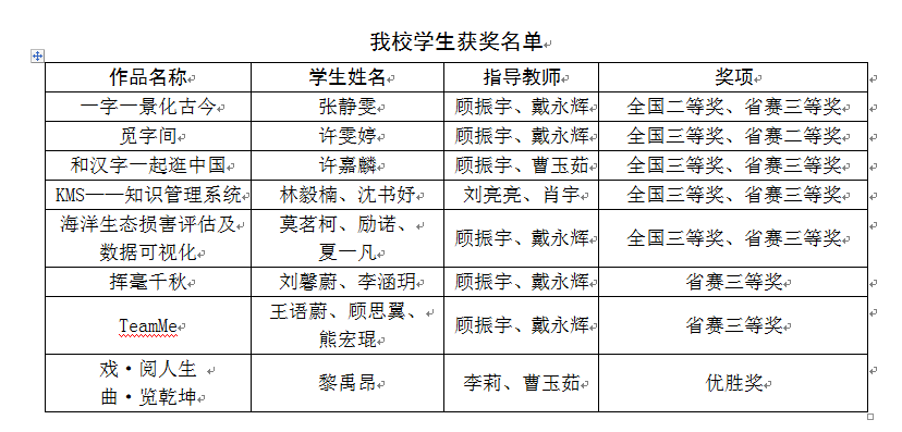 历年来,我校学生多次参加本赛事并获奖。今后我校将继续在提升比赛成绩、扩展比赛类型以及以赛促教等方面不断努力。