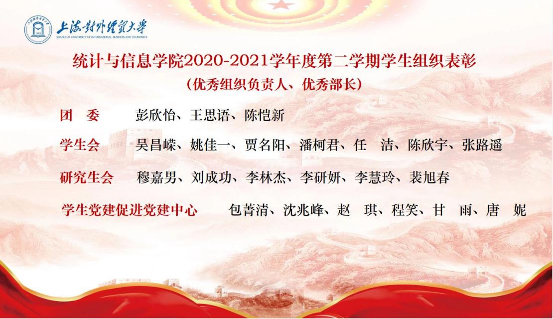 会上,院团委副书记岳怡寒宣读了《统计与信息学院2020-2021学年度第二学期学生组织表彰学生组织表彰名单》。
