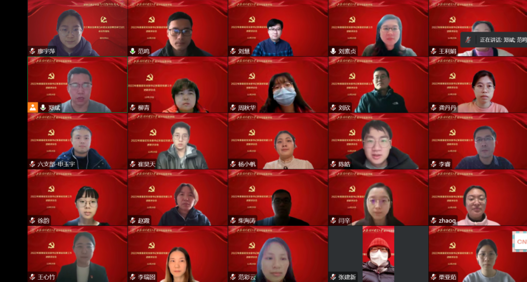 12月29日下午,统计与信息学院2022年度党支部书记抓基层党建工作述职评议会在线召开。学院党委班子成员、组织员、全体师生党支部书记、党员师生代表出席会议。会议由学院党委副书记范鸣主持。