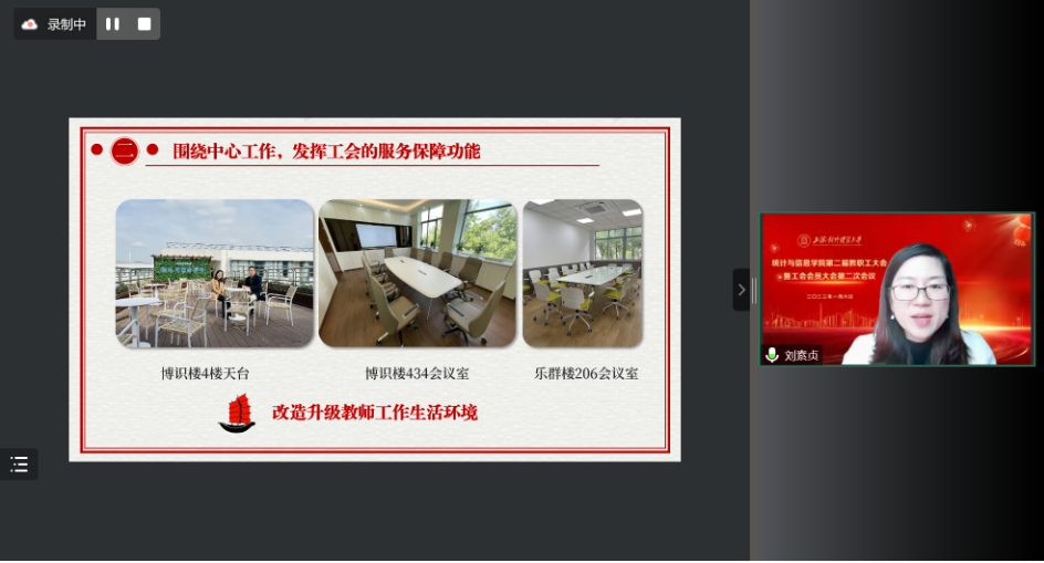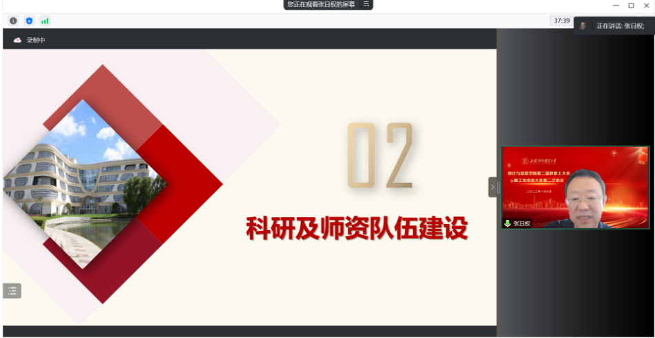 刘素代表学院向全体教职工致以新年问候,介绍了统计与信息学院2022年度党的建设工作开展情况。