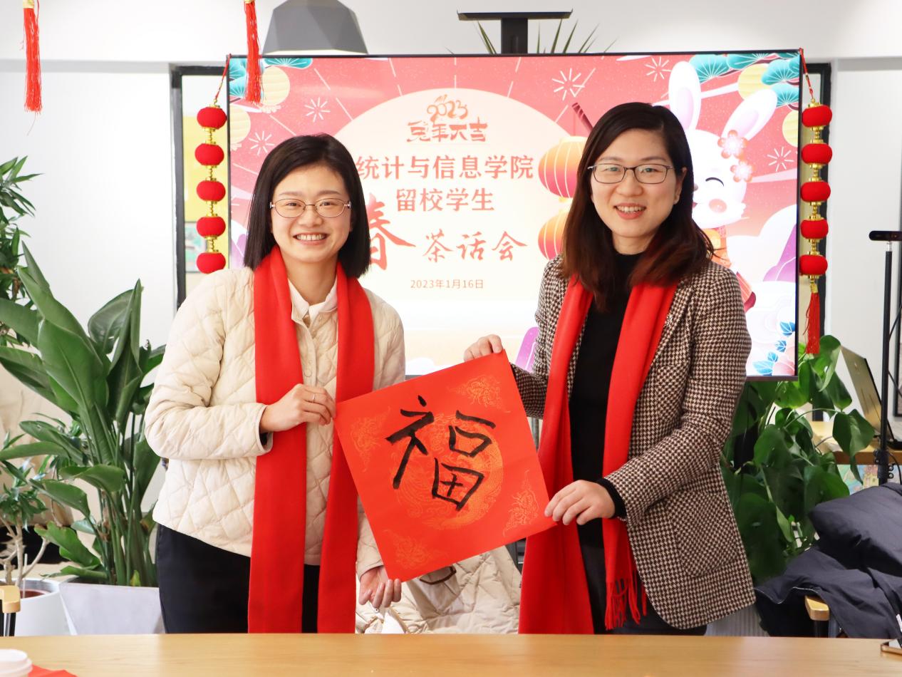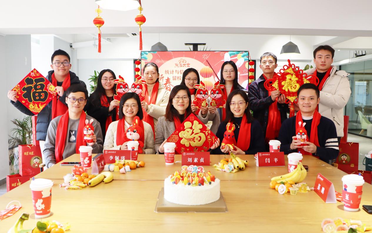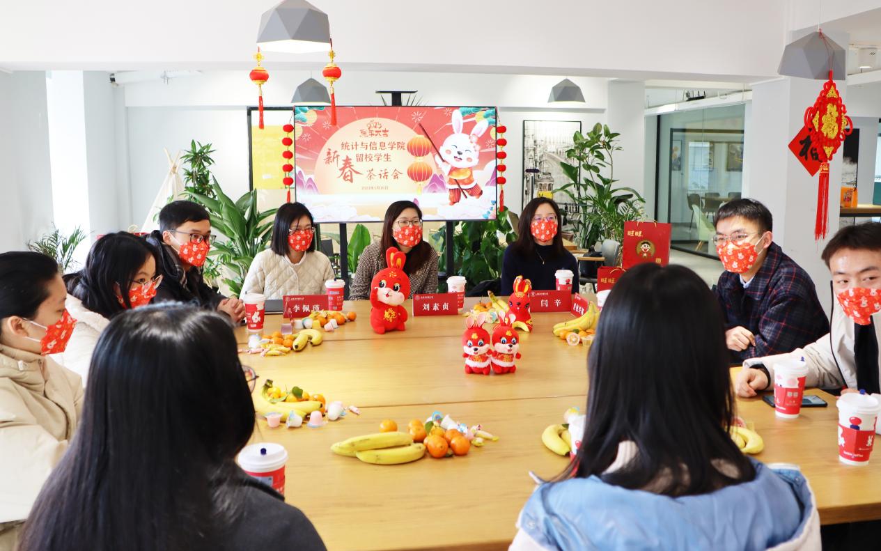 1月16日下午,学院在松江学生社区“创享家”举行留校学生新春茶话会,院党委书记刘素贞、党委副书记范鸣、经济统计系主任李佩瑾、数据科学系教工党支部书记闫辛、团委书记肖包兴邦、学院助理辅导员彭鹏与留校学生欢聚一堂,共话情谊,同迎新春。