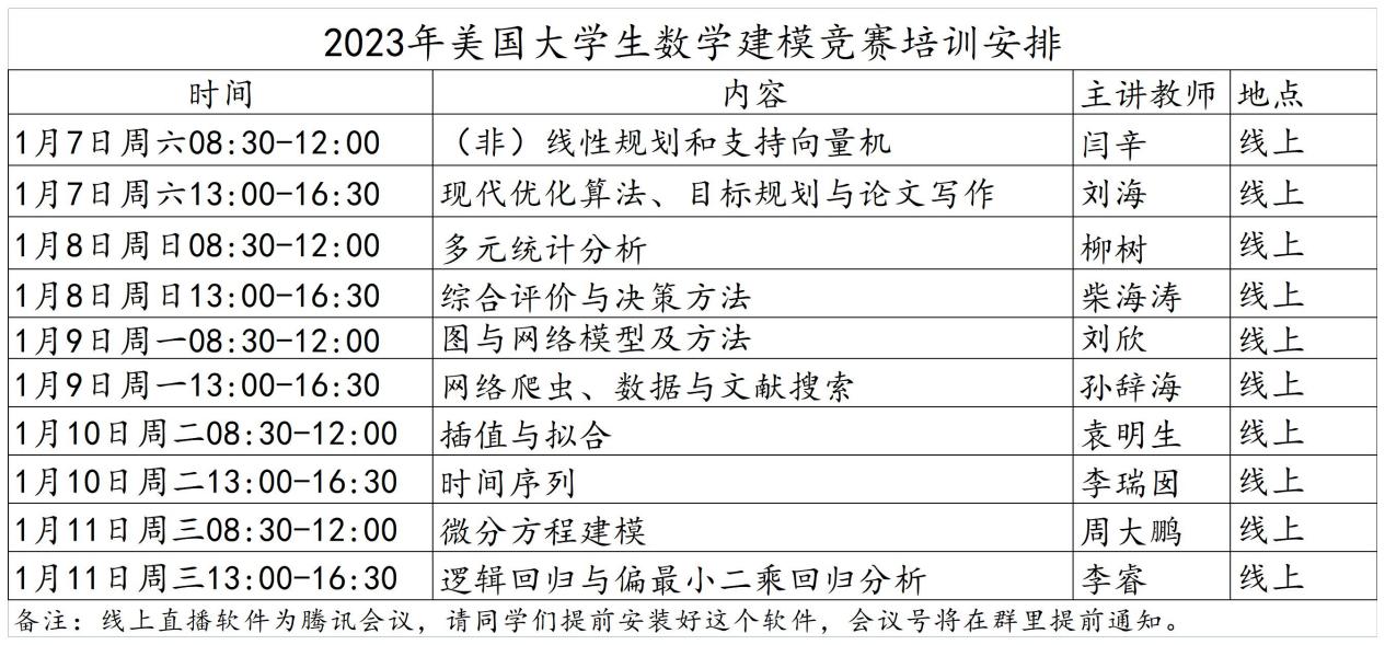 2023年美赛校赛晋级名单及线上培训通知