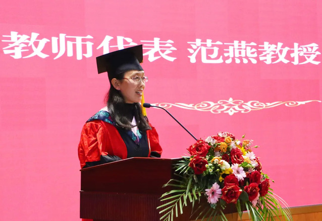 数理统计系范燕教授作为研究生导师代表勉励毕业生要坚定信念、勇攀高峰;享受过程、注重细节;乐观向上,感恩生活。同时她为毕业生们送上了一句歌词作为寄语:“The sky knows when it’s time to snow. Don’t need to teach a seed to grow.”,并祝愿所有毕业生们都能拥有幸福、快乐、充实、精彩的人生。