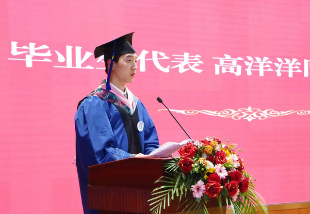 应用统计专硕高洋洋同学代表2023届研究生毕业生对学院的培养和帮助表示感谢,他表示将始终牢记“统信人”的使命担当,展现专业特色和能力,积极服务经济社会发展,为祖国的繁荣富强、人民的福祉贡献青春力量。同时,他也祝福学院的发展越来越好,祝愿所有师长身体健康,万事胜意。