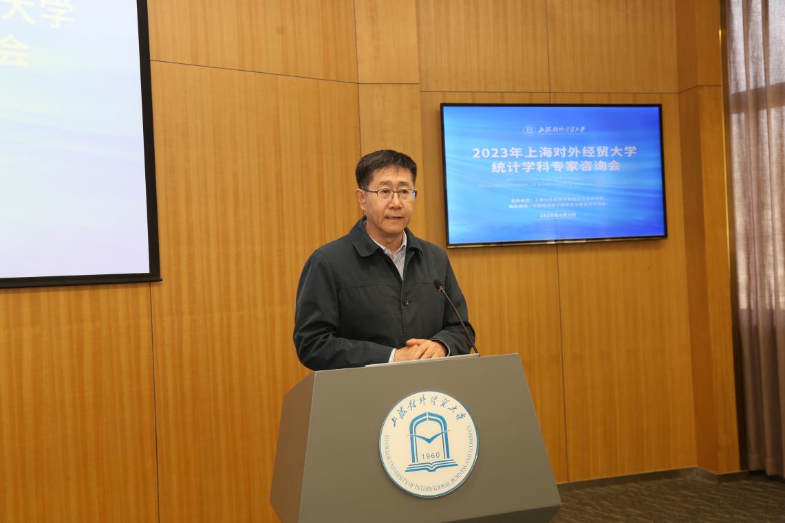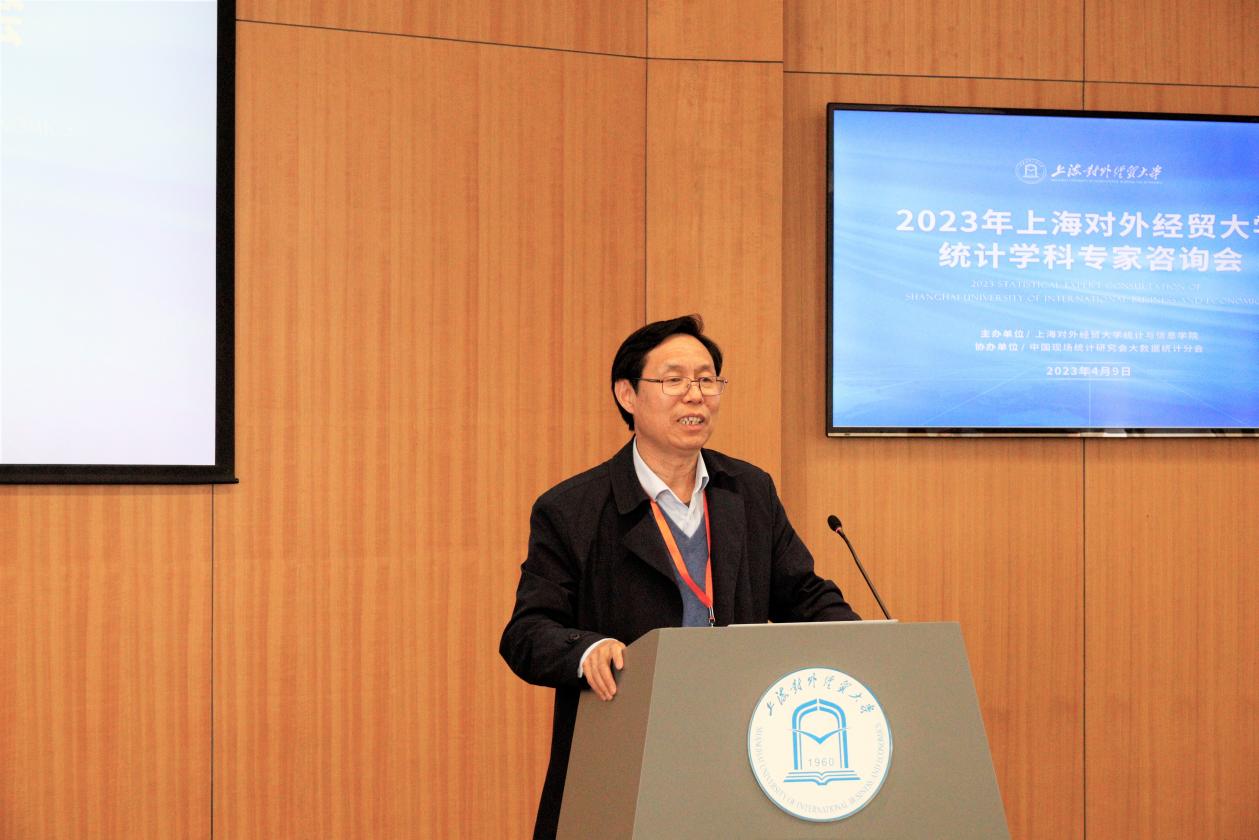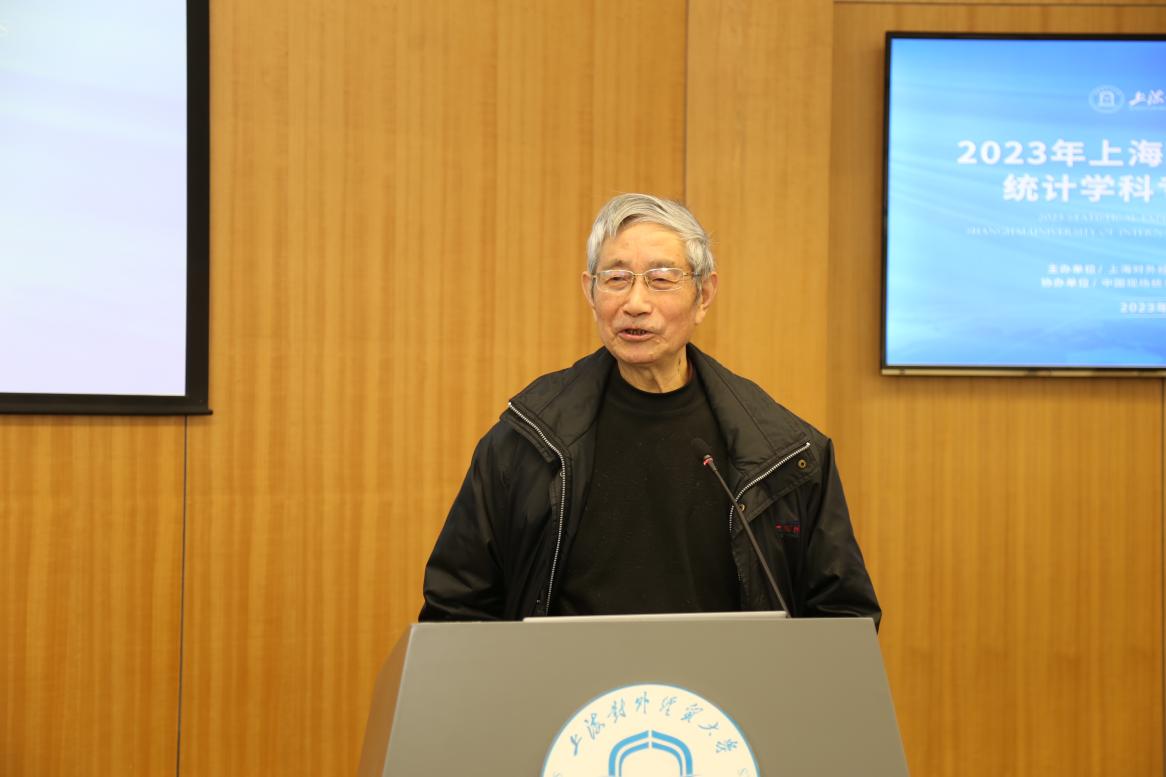 王静龙教授在致辞中回顾了国内统计学科的发展历程,以及多次受邀到上海对外经贸大学交流的经历,积极肯定了学校的统计学科发展成效。他对本次专家咨询会的召开表示热烈祝贺,希望与会各单位和专家要共同关心青年统计学者的成长,共同推动全国统计学科发展。