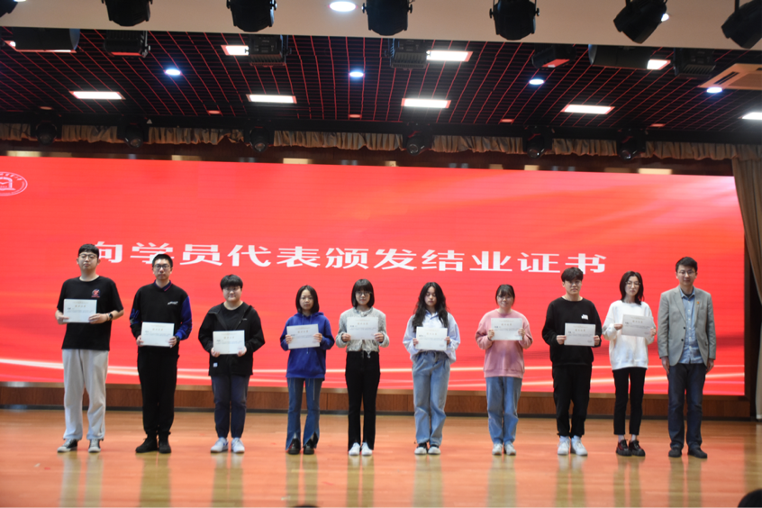 本期入党积极分子培训班共有187名学员参加培训,其中134名学员顺利结业,11名学员在培训中综合表现优异,被评为“优秀学员”。刘素贞为优秀学员颁发荣誉证书,冯越为学员代表颁发结业证书。
