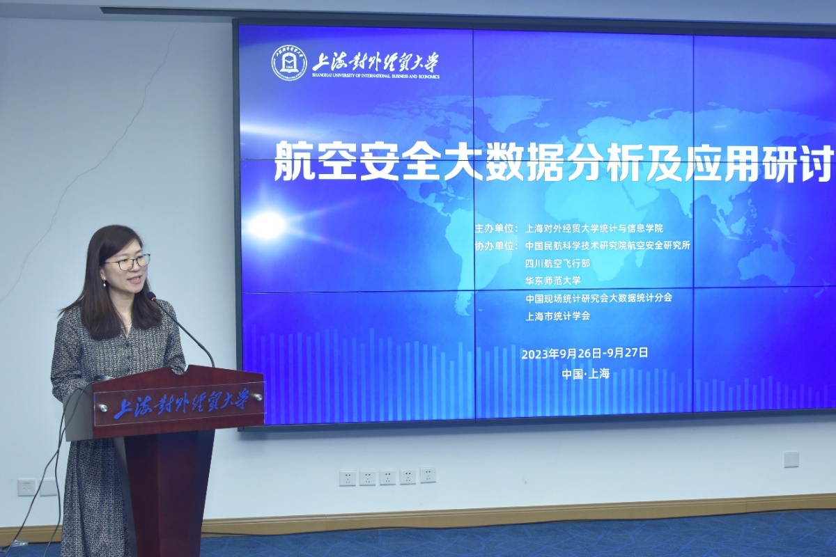 为促进大数据技术与航空安全的融合应用创新,加强航空安全与数理统计、信息技术等领域的学术交流,9月26日至27日,由上海对外经贸大学统计与信息学院主办,中国民航科学技术研究院航空安全研究所、四川航空飞行部、华东师范大学、中国现场统计研究会大数据统计分会、上海市统计学会共同协办的“2023航空安全大数据分析及应用研讨会”在上海对外经贸大学古北校区召开。本次会议采用线上线下相结合的形式,吸引了国内近百位专家、学者和师生参加。开幕式由上海对外经贸大学统计与信息学院党委书记刘素贞主持。