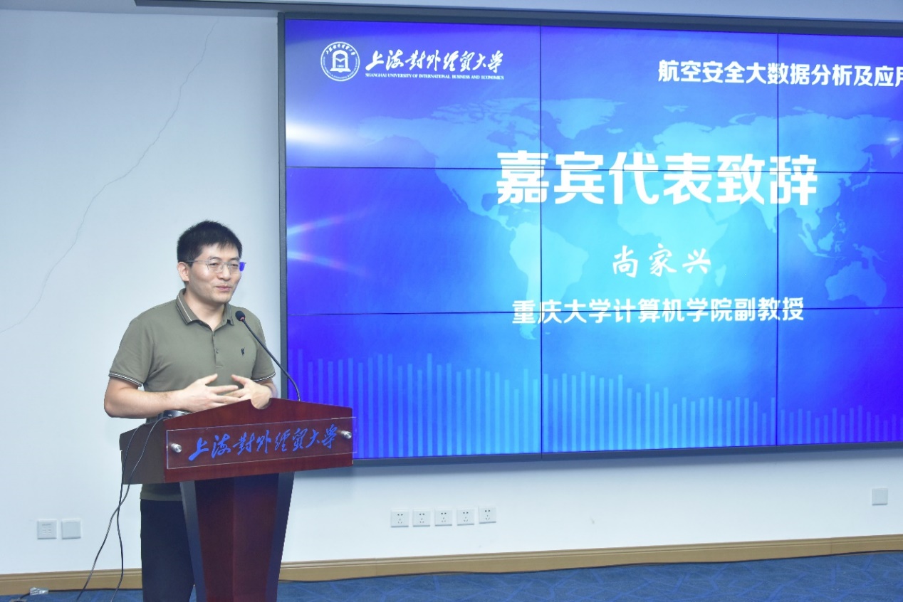 上海对外经贸大学统计与信息学院院长张日权教授代表主办方致欢迎辞。上海市统计学会秘书长刘旖旎、重庆大学计算机学院尚家兴副教授、四川航空飞行部许博浩机长、华东师范大学统计学院方方教授、中国民航科学技术研究院航空安全研究所赵新斌副研究员等分别代表协办方致辞。大家共同表示,希望通过本次研讨会搭建一个跨学科跨领域的交流平台,汇聚专家、学者和师生的力量,对大数据技术与航空安全的融合应用创新广泛深入地进行学术研讨和成果分享。