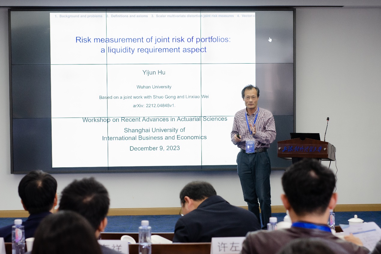为促进和加强保险精算学领域科研人员之间的学术交流与合作,加快培养保险精算和交叉学科人才,2023年12月9日,由统计应用与理论研究创新引智基地(以下简称“111引智基地”)主办,上海对外经贸大学统计与信息学院、华东师范大学统计学院和统计与数据科学前沿理论及应用教育部重点实验室联合协办的“2023保险精算最新研究进展研讨会”在上海对外经贸大学古北校区顺利举行。上海对外经贸大学校长、111引智基地负责人汪荣明教授出席会议并致辞。来自西交利物浦大学、中国人民大学、中国科学技术大学、武汉大学、苏州大学、天津大学、南京师范大学、香港理工大学、广东外语外贸大学、南京财经大学、福建师范大学、华东师范大学、上海对外经贸大学等十余所高校的专家学者及师生围绕保险精算学的研究进展进行了深入研讨和交流。会议开幕式由上海对外经贸大学统计与信息学院副院长赵倩主持。
