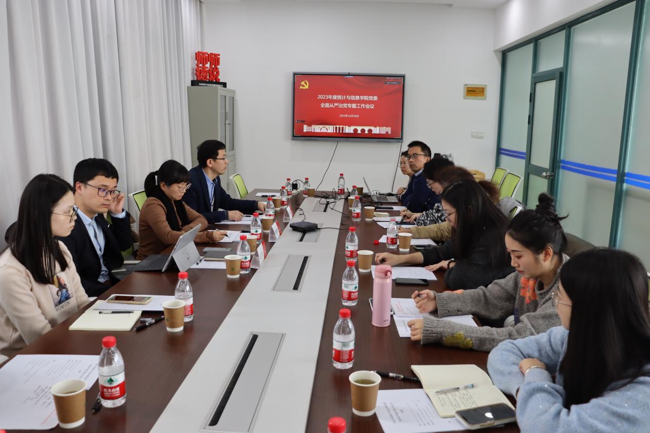 12月26日下午,统计与信息学院2023年全面从严治党专题会议在博识楼四楼会议室召开。校纪委监督检查室主任刘春华受邀出席并作专题讲座,学院党委领导班子成员、学院党支部纪检委员和党员代表等参加会议。会议由学院纪检委员、副院长李睿主持。