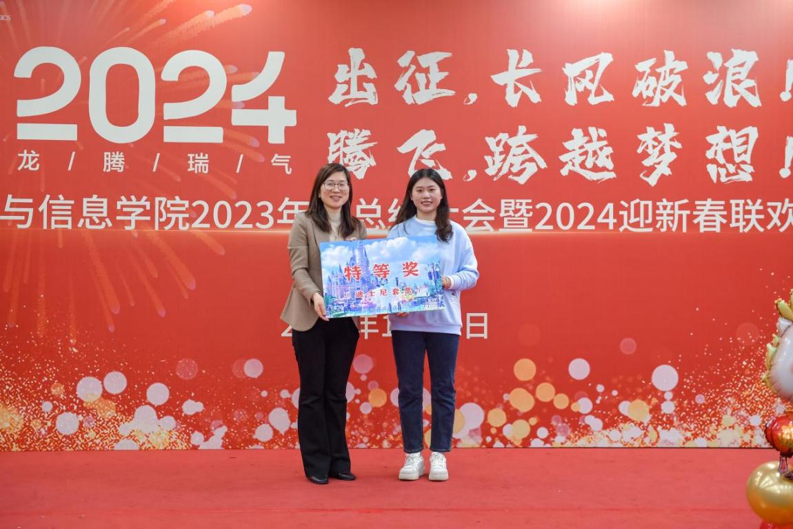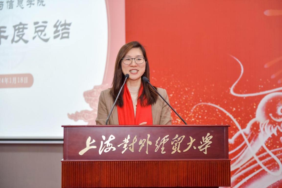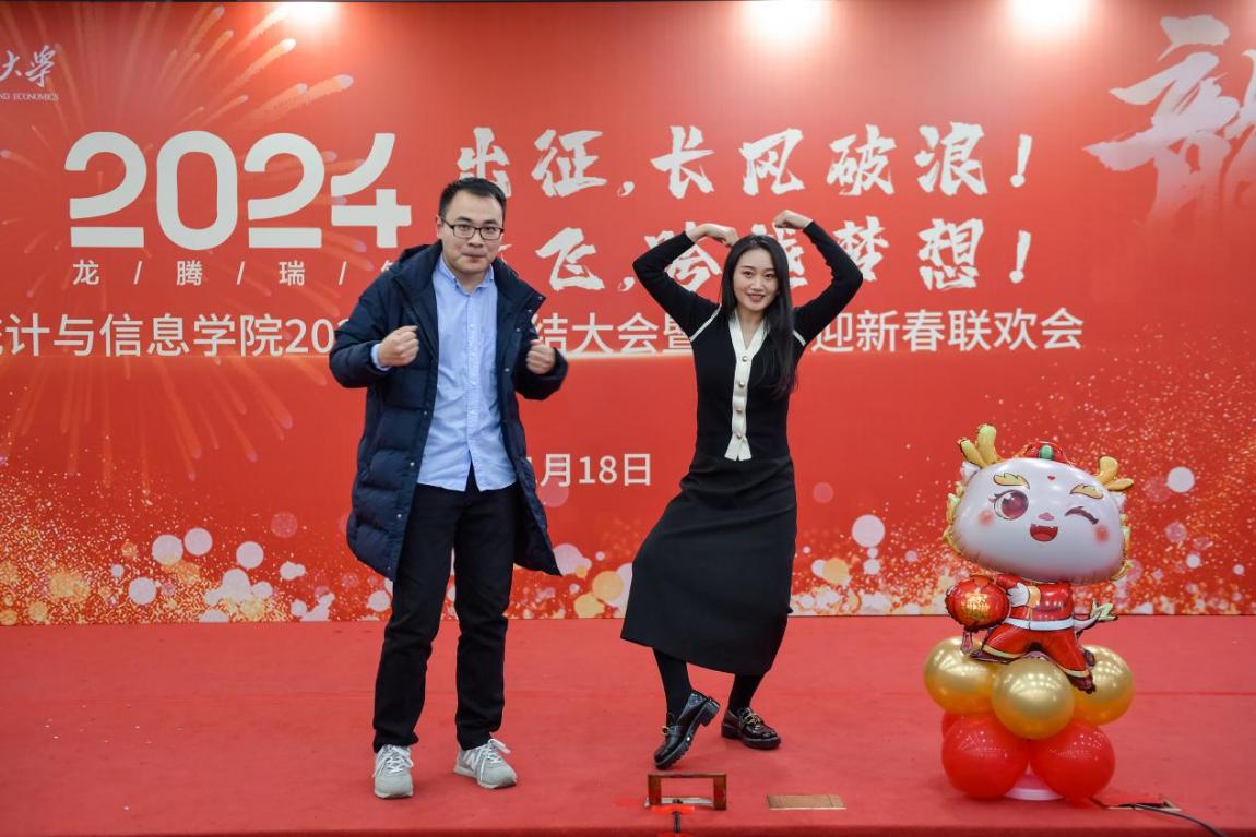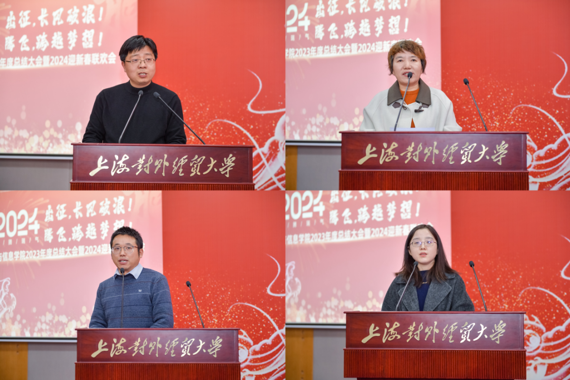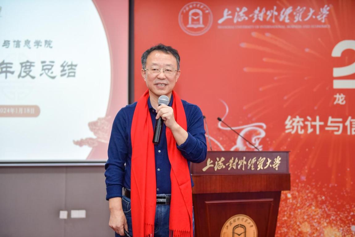 1月18日下午,统计与信息学院以“出征,长风破浪!腾飞,跨越梦想!”为主题,在信息楼526会议室举行2023年度总结大会暨2024迎新春联欢会,学院全体教职工欢聚一堂,回顾2023,展望2024,喜迎新春,共话发展。总结大会由学院党委书记刘素贞主持。