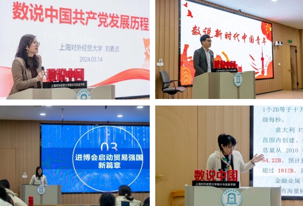 据了解,上海对外经贸大学统计与信息学院党委自2022年5月起,推出了“数说党史 数说中国”理论学习项目,结合学科专业特色打造“党史+学科”学习教育模式,开展“数说”系列课程和活动。2022年11月,基于“数说党史 数说中国”项目设计并开展了“数说二十大”系列宣讲课程,成为学校党的二十大精神学习宣讲活动的鲜亮品牌。一年多来,宣讲团师生走出校园,把课程送进大中小学、街道社区、田间地头、企业车间,共计开展理论宣讲活动60余场,制作理论宣讲视频20余部,累计辐射受众万余人次,受光明日报、解放日报、中国青年报、学习强国等20余家主流媒体报道47次,建立5个“数说党史 数说中国”理论宣讲基地和课程联合开发计划,形成广泛的社会影响。2024年3月,学院进一步优化课程体系,向全校学生开设《数说党史 数说中国》选修课程。目前课程已经讲授了4个主题的课程,包括《数说中国共产党发展历程》《数说新时代青年》《数说贸易强国建设》《数说金融科技》。课程内容体系化、专业化、特色化,尤其突出“数字化”,师生运用数据挖掘和统计分析方法,以大量数据、图表、分析对比和可视化的方式多维度直观呈现党的二十大精神,数字赋能让课程更有说服力,让师生更有“共鸣”、能“共情”。接下来,课程还将开展《数说脱贫攻坚》《数说共同富裕》《数说绿色发展》《数说人民生活新图景》等多个主题课程,继续为学生们展示中国的辉煌成就和未来发展潜力。相信这一系列课程的推出,将进一步激发学生们的学习热情,拓宽他们的知识视野,帮助他们读懂历史进程,把握十年伟大变革,明晰未来发展之路。