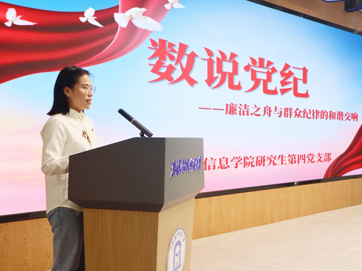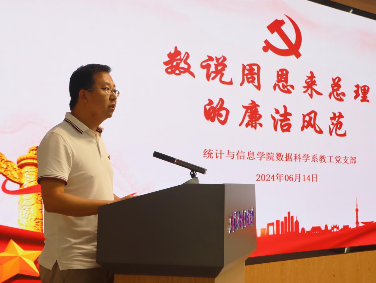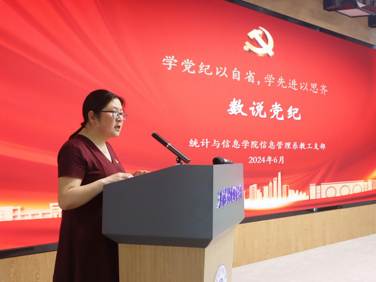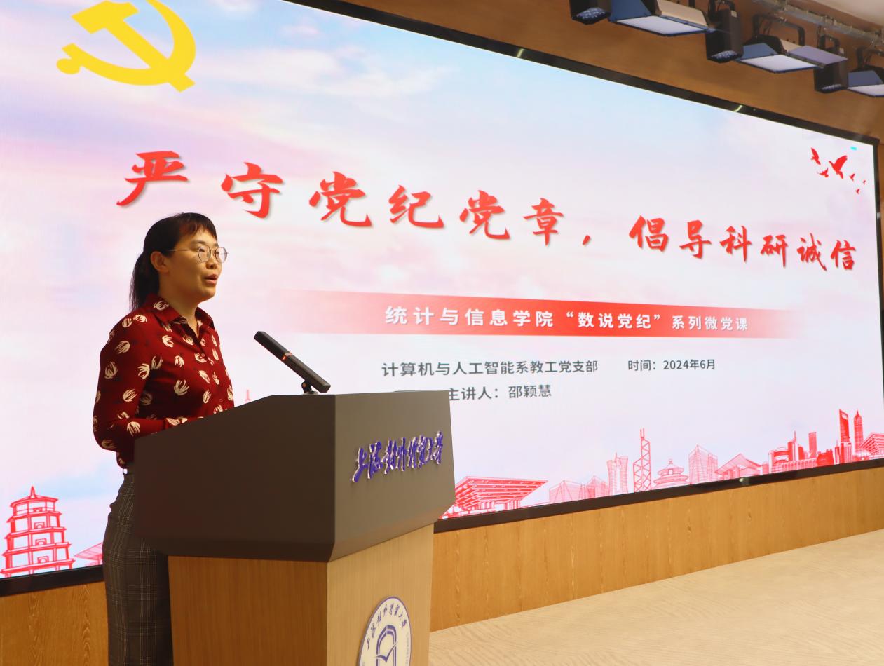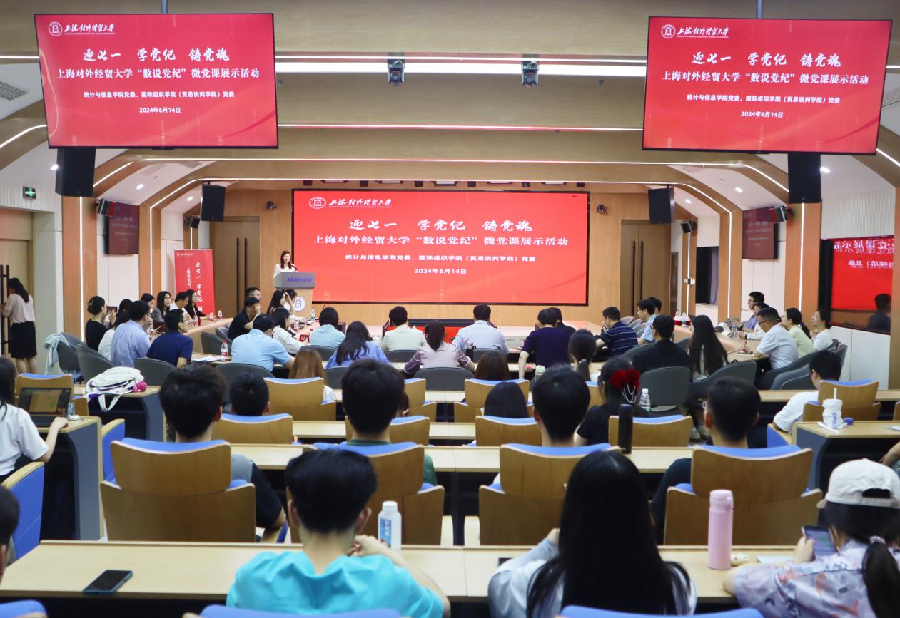 为深入学习习近平总书记关于全面加强党的纪律建设的重要论述,推进党纪学习教育走深走实,鼓励师生结合学科专业特色,以数字为密码讲述党的纪律建设和中国共产党人的廉洁精神,在校党委组织部、纪委、宣传部的指导下,统计与信息学院与国际组织学院(贸易谈判学院)党委于6月14日在松江校区联合举办“迎七一 学党纪 铸党魂”——“数说党纪”微党课展示活动。活动邀请校党委常委、组织部部长陈加林,纪委副书记徐佳,党委宣传部副部长谢峰,东华大学纺织学院党委书记李佳耀,华东政法大学党委组织部副部长钱嘉熙,市教卫工作党委组织干部处干部姜舒婷担任评委。活动由统计与信息学院、国际组织学院(贸易谈判学院)党委书记刘素贞主持。