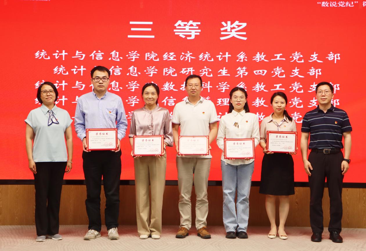 三等奖 | 统计与信息学院经济统计系教工党支部 统计与信息学院研究生第四党支部 统计与信息学院数据科学系教工党支部 统计与信息学院信息管理系教工党支部 统计与信息学院数理统计系教工党支部 |