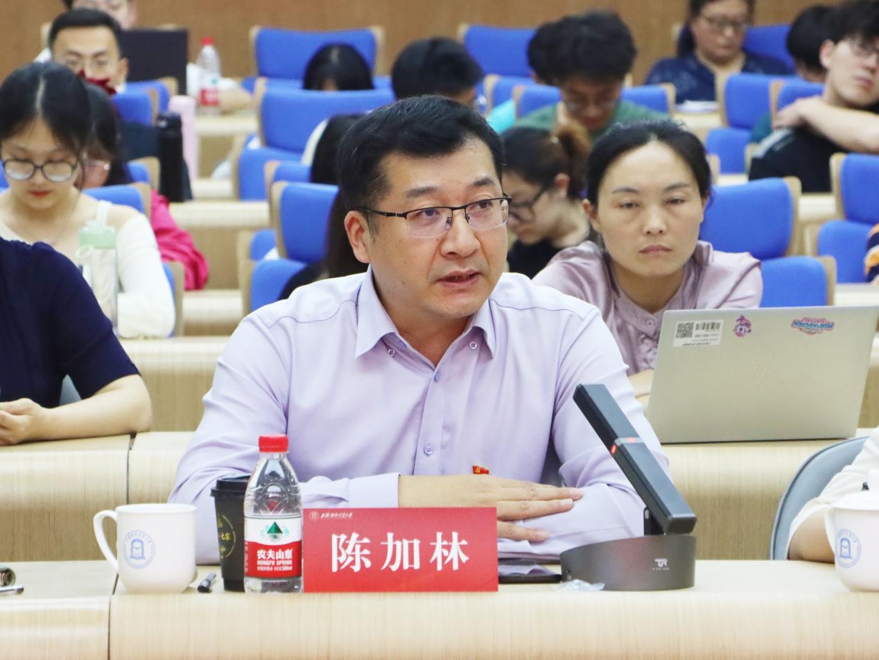 评委们对微党课进行点评。陈加林肯定了统计与信息学院党委深耕多年的“数说党史 数说中国”系列理论课程,他指出,本次“数说党纪”微党课展示活动是“数说党史 数说中国”系列活动的新探索,是对党纪学习教育方式的一种创新尝试,也是展现学院师生党员党纪学习教育成果的一次生动实践。他进一步强调了开展党纪学习教育的重要意义,鼓励师生党员以此次活动为契机,继续深入学习党规党纪,提升党性修养,把学习成效转化为工作动能,在实践中长才干、担重任。