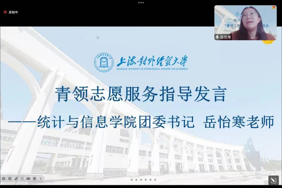 2024年8月30日,上海对外经贸大学统计与信息学院线上举行2024年“青领工程”志愿者培训大会。统计与信息学院团委书记岳怡寒老师、团委副书记彭鹏老师及学院全体青领志愿者出席会议,会议由团委组织部负责人代翊群同学主持。