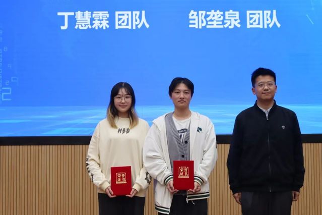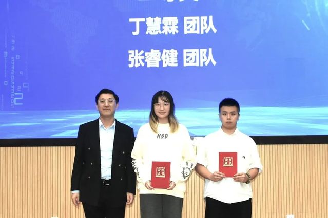 中国计算机设计大赛大数据应用赛道一等奖获得者张睿健、肖懿同学分别展示获奖作品《基于RBLL模型的智能投顾与决策支持系统》《数读农村空心化——以河南省83县为例》。
