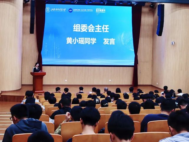 组委会主任(学生)黄小瑶同学详细介绍了第十七届计算机文化节活动安排,鼓励大家积极投入到各项计算机文化活动中,在实践中体验、在体验中创新、在创新中成长。