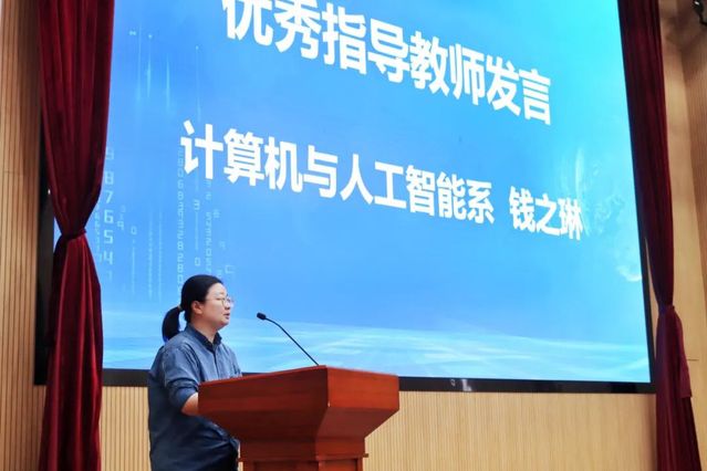 中国计算机设计大赛优秀指导教师钱之琳作为教师代表进行发言,鼓励同学们要勇于创新和尝试,在竞赛中提升自身能力。