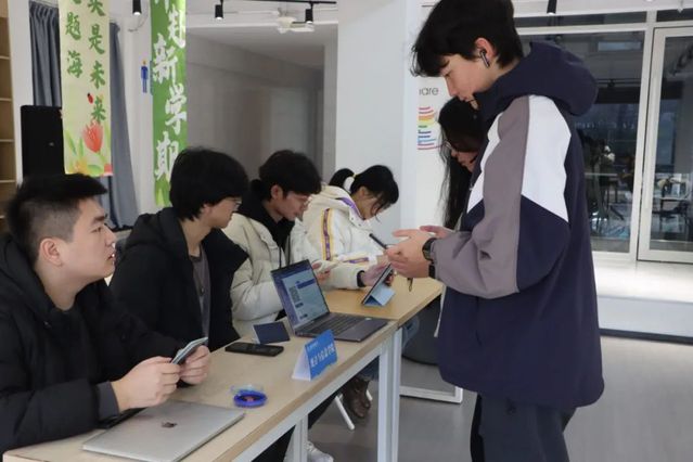 2025年2月23日上午,学院领导和辅导员老师早早地在学生社区88号楼大厅等待返校学生的到来,亲切问候学生假期的情况。负责办理注册手续的志愿者耐心引导同学们签到,提醒注意事项。同学们手持学生证,依次排队等候完成报到手续。