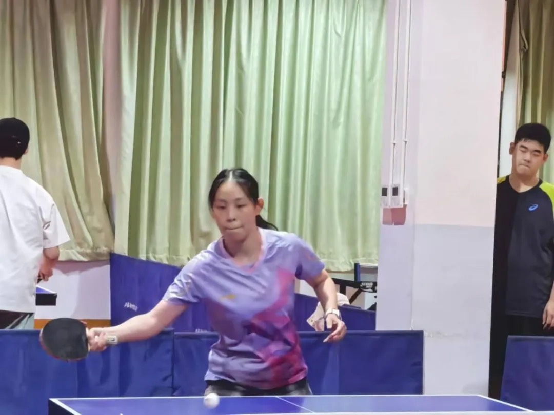 第二场是女子单打。我院选手许赞阅经验丰富、技艺精湛,很快就进入了状态。比赛逐渐变得焦灼,对方紧咬比分,到达5:5的赛点,好在我方更胜一筹,通过利用发球技术,使对面出球不慎出界,最终获得了胜利,取得了6:5的成绩。