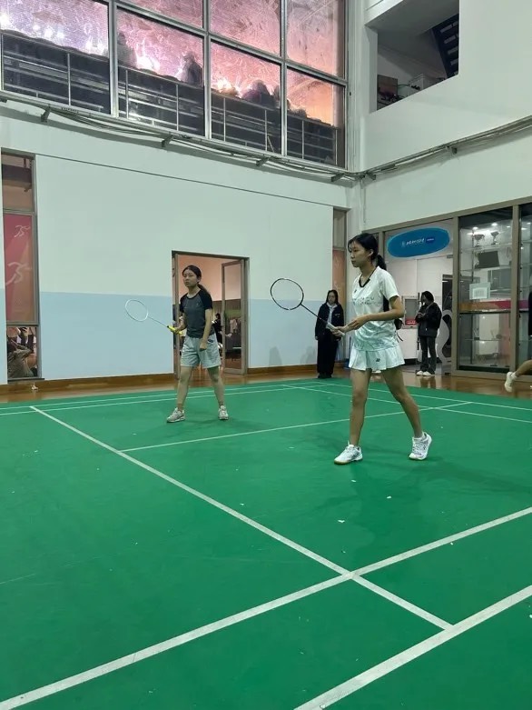 本场比赛派出的是胡佳林与叶子馨同学。在这场女双比赛中,我方队员虽积极应对,但面对强劲的对手,始终未能找到突破口。比赛中分差自开局便逐渐拉大,尽管我方努力调整战术,依然未能扭转局势。最终我方以8:21遗憾告负。