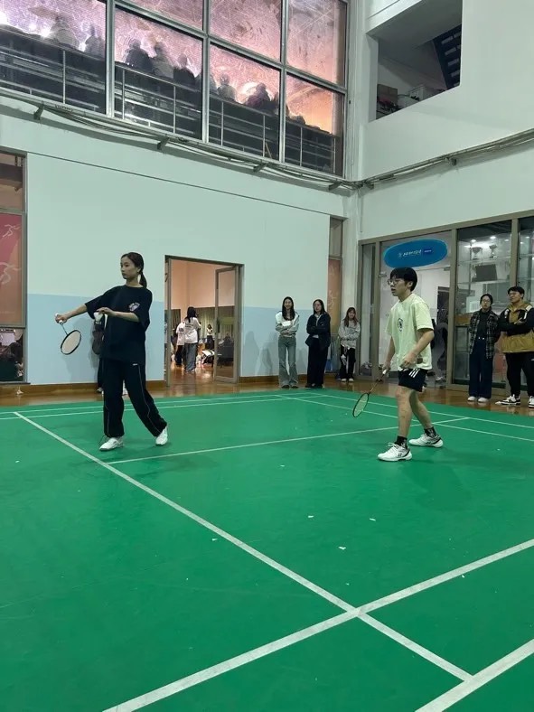 最后一场混合双打比赛我方派出的是孙浩仁和余馨尔。两人分工明确,配合默契,进攻果断,率先拿下两分。随着比赛白热化,战况胶着,比分紧咬,双方都是好球频出。但在比赛后段,我方出现了一些小失误,最终以16:25结束了比赛。