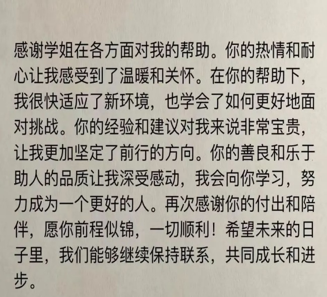 此次与新生的线下交流活动是一次宝贵的经历。它不仅帮助新生更好地融入校园,也让我作为学姐的角色更加明确,增强了我的责任感和使命感。我期待未来能有更多这样的机会,与新生们共同成长,共同进步。