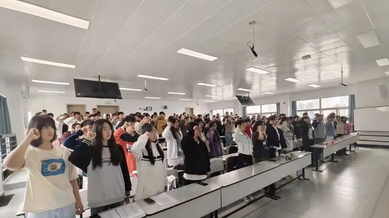 团委副书记彭鹏老师带领全体同学重温入团誓词,希望全体同学能够始终将誓言铭记在心,牢记自己肩上的使命与责任,争做优秀团员。