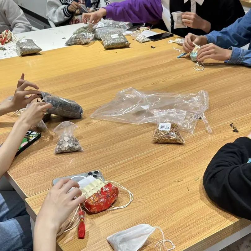 在了解了香囊的历史与种类之后,同学们纷纷开始了自己的制作香囊体验。活动现场洋溢着浓厚的艺术氛围,每个人都在尽情发挥自己的想象力和创造力,用多种多样的香料制作出独一无二的作品。在制作过程中,同学们互相交流、互相帮助,现场气氛热烈而融洽。通过这次制作香囊体验活动,同学们不仅锻炼了自己的动手能力和艺术创造力,更是在实践中感受到了团队合作的力量和乐趣。