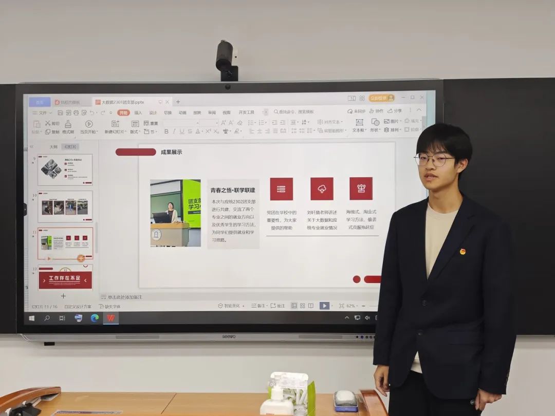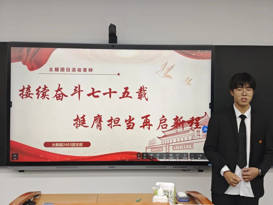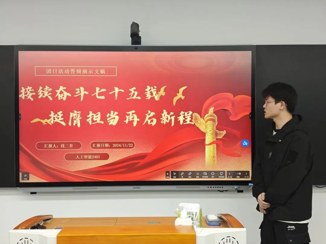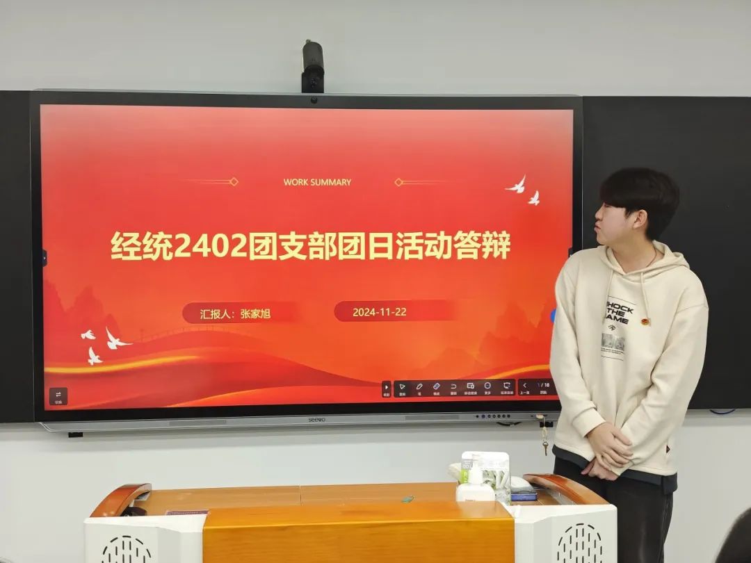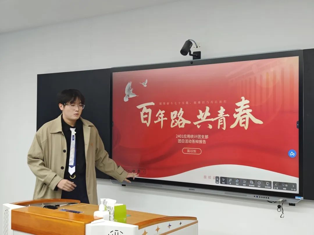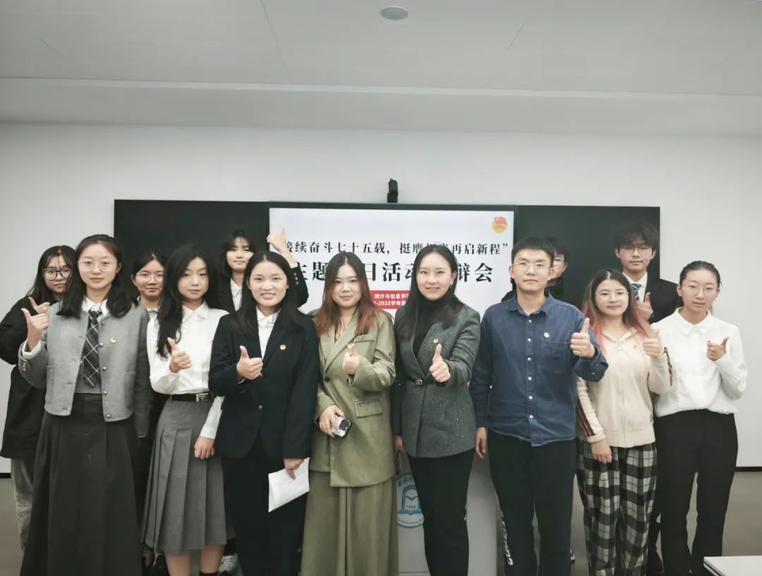 2024年11月22日,统计与信息学院“接续奋斗七十五载,挺膺担当再启新程”主题团日活动答辩会在学思楼SD408教室顺利举行。学院党建主管冯越、团委书记岳怡寒、团委副书记彭鹏、校团委组织部负责人徐欣然、统信学院学生团委副书记吴一凡、学生党建促进中心主任封冰悦以及全体2023级、2024级团支书参加会议,会议由统计与信息学院组织部石蕊婷主持。