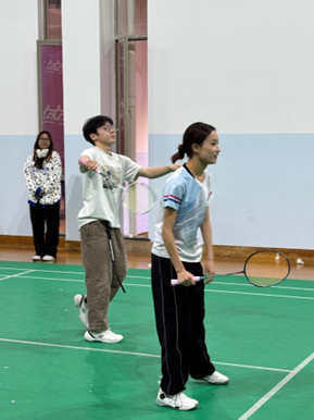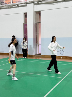 女双比赛我方派出的是胡佳林同学和叶子馨同学。尽管比赛开始时我方尝试通过多变的战术寻找突破口,但对手表现稳健,攻防转换速度极快,多次通过精准的配合瓦解我方防线。我方组合在比赛中也一度尝试加强网前进攻,但对手顶住压力并迅速反击。比分差距逐渐拉开,我方选手心态受到一定影响,失误增多,最终以8:21遗憾落败。此次比赛展现了我们与强队之间的差距,未来我们会加强战术训练。
