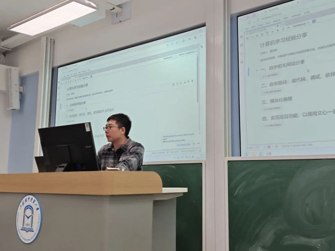 邹垄泉学长介绍了大学三年的学习以及获奖经历,叙述了自己绩点排名上升的过程,给学弟学妹们大学四年的规划提供了启发。他还列出了到目前为止所有涉及编程的课程的学习情况,并对其中一些重要课程进行说明,给出了学习建议。另外,学长分享了关于计算机的各种实用学习辅助软件,点明了各个软件的优缺点,以便于同学们更有针对性地从中选择对自己有帮助的。随后学长简单介绍了Chatgpt大模型,并对怎样能有效合理地运用它来辅助学习提出了建议。他还分享了自己参加国赛人工智能赛道的经历,介绍了优秀作品的厉害所在,从而体现了比赛的要点。最后他强调并提醒各位学弟学妹们在学术方面要注重论文格式,包括注意字体、作图、加粗重要内容等等。